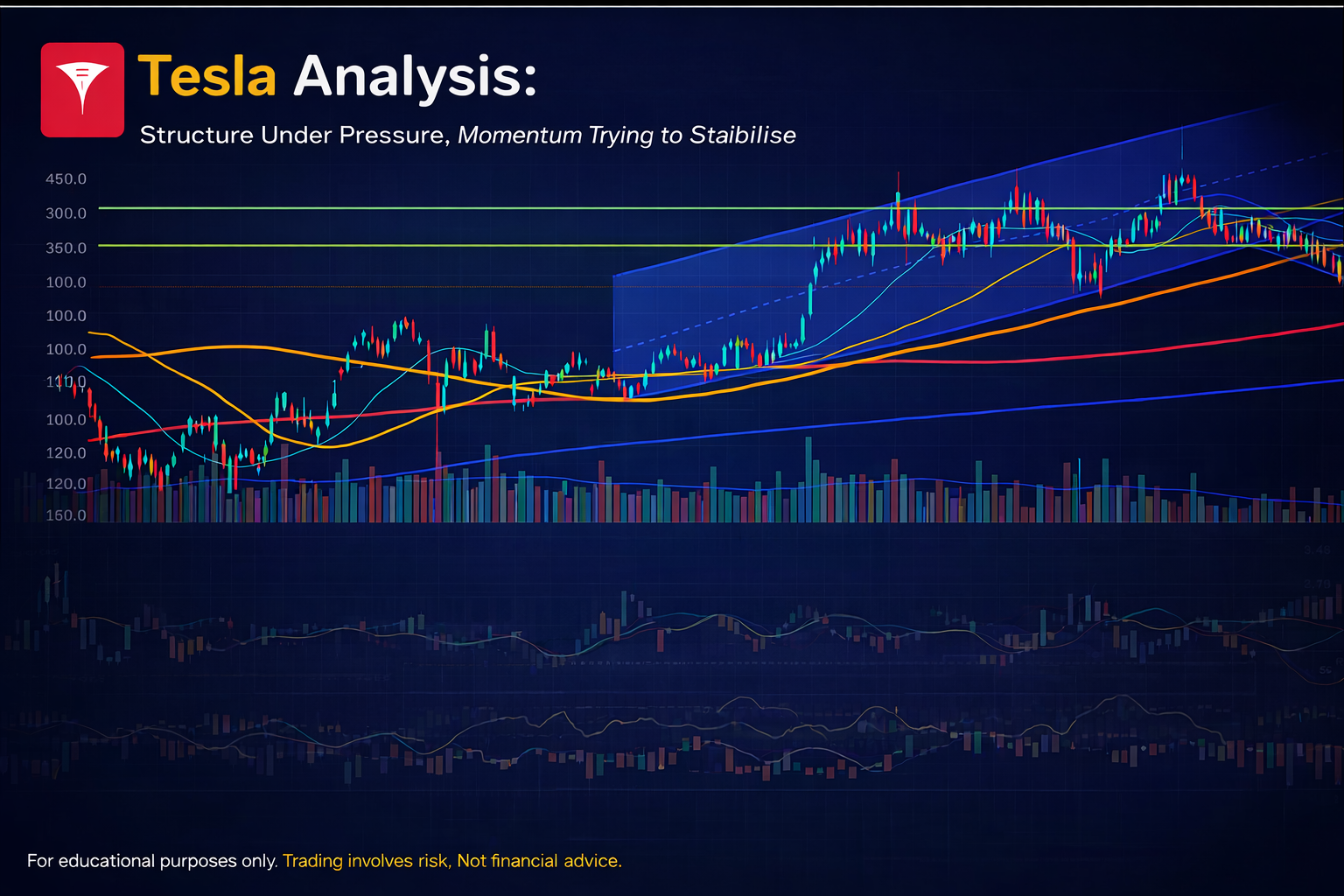 Tesla (TSLA) – Structure Under Pressure, Momentum Trying to Stabilise