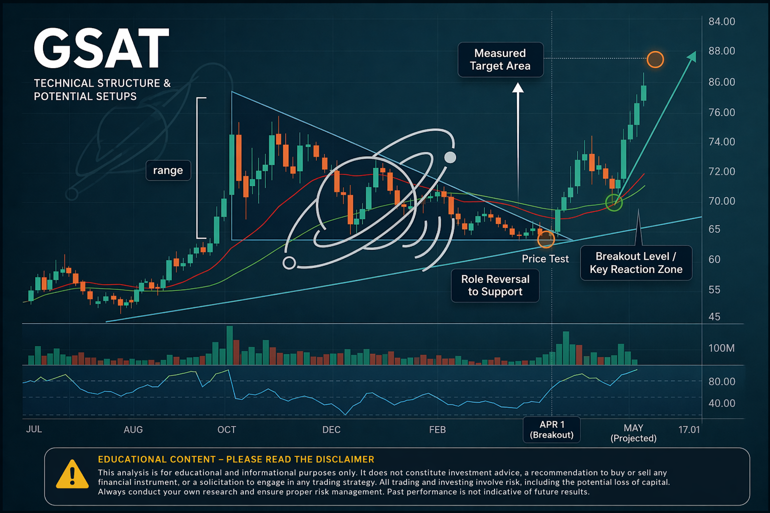 GSAT Technical Structure – Breakout, Measured Move & Key Levels