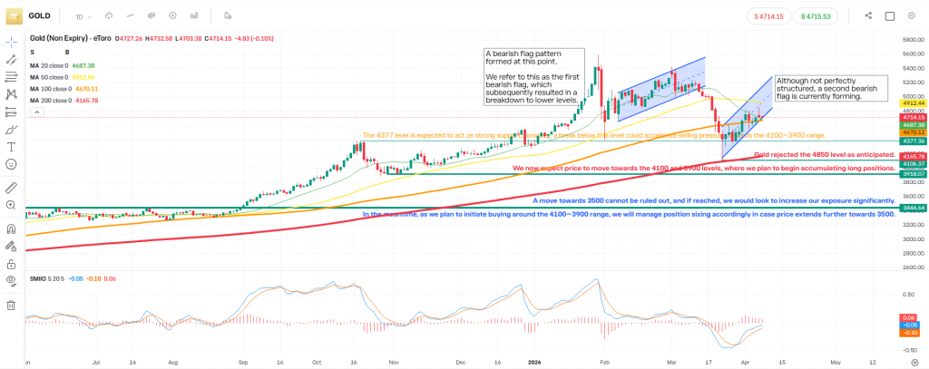 Risk Contingency: In a tail-risk scenario, a move toward 3500 cannot be ignored. We maintain a strict risk management protocol, keeping position sizes conservative until the price reaches these primary “value” levels.