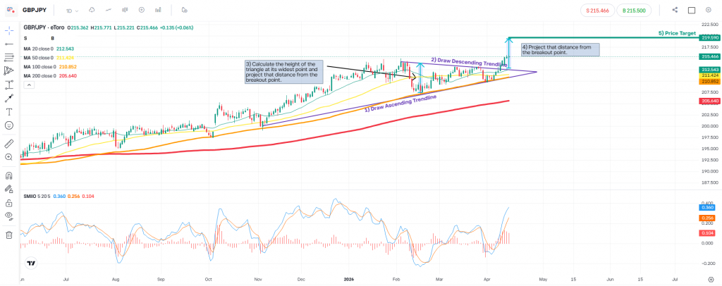 In this case, GBPJPY respected both trendlines, compressing price into the apex.