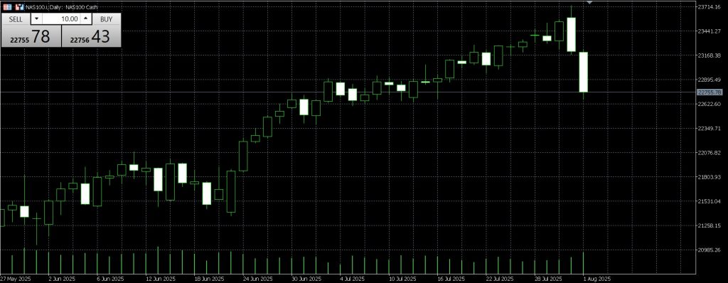 By Friday, however, the NFP-led reversal dragged the index back to 22,750, well within our flagged correction zone. This reinforces our earlier outlook — that a pullback toward 22,250 is part of a broader rebalancing phase.