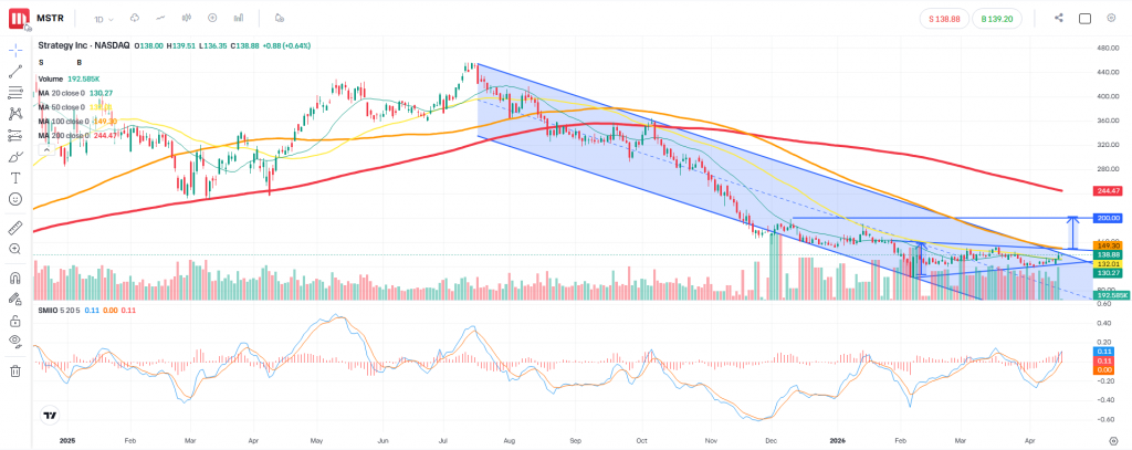 From a broader perspective, MSTR has transitioned from a strong bullish trend into a clear bearish structure over recent months.