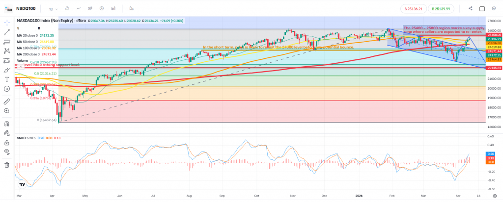We’re currently monitoring the Nasdaq 100 as price continues to trade within a critical technical structure, where both short-term momentum and higher timeframe levels are beginning to diverge.