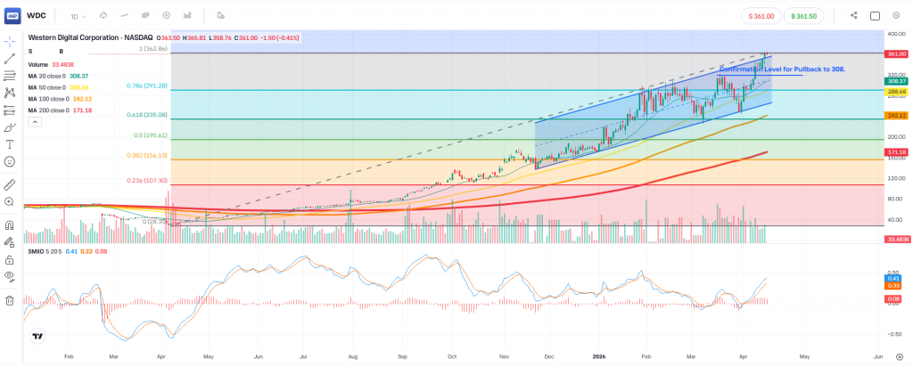 WDC is currently testing a major resistance area around the $360–$365 region.